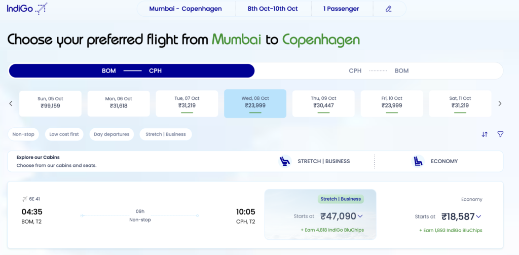 IndiGo starter ruten op mellem Mumbai og København. Det bliver en rute som flyves 3 gange om ugen. Tidligere har Delhi også være på tale som deres første rute til Danmark.