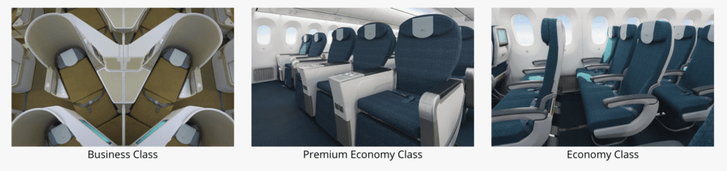 Det bliver en Boeing 787-9 med plads til 274 passagerer fordelt på 3 klasser – Business Class, Premium Economy og Economy.