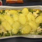 Kort efter at skiltet med sikkerhedsbæltet var slukket gik crewet hurtigt i gang med at forberede servicen. Først kom de igennem kabinen med drikkevarer før maden og snacks. Godt 15 minutter efter var det varme måltid klar. Der var valget mellem kylling med gnocchi eller en vegatarpasta. Jeg valgte retten med kylling. Det viste sig at det er en ret jeg har fået før med British Airways. Det er en lidt anonym ret, så det er ikke den helt store smagsoplevelse jeg fik. Kvaliteten er dog i orden og der er godt bid i både kyllingen og gnocchi.