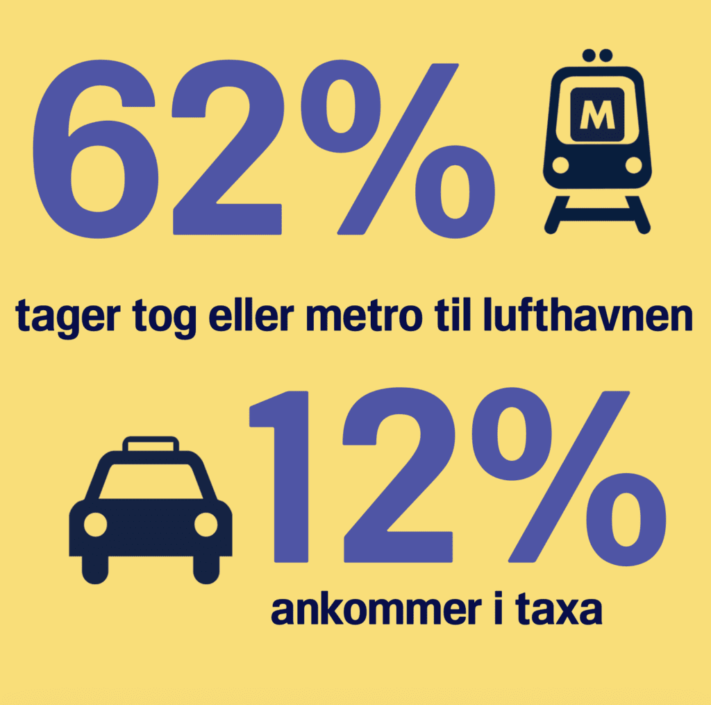 Adgangen til lufthavnen viste et differentieret mobilitetsmønster. 62 procent ankom med tog eller metro, mens 20 procent valgte bilen.