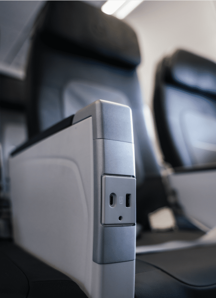 Samtlige sæder udstyres med både USB-A- og USB-C-porte, hvilket imødekommer den stigende efterspørgsel på opladning af mobile enheder. Derudover installeres integrerede holdere til tablets og smartphones, så passagerer nemt kan streame indhold på egne enheder.