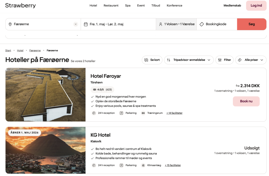 Færøerne fortsætter med at rykke op på radaren hos både leisurerejsende og til konferencer og nu forstærker Strawberry sin position. Til maj 2026 åbner resorthotellet KG Hotel i Klaksvík, som bliver hotelkædens andet hotel på øgruppen.