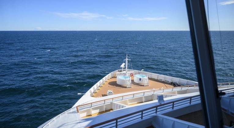 Forsidefoto: På vej mod nye horisonter – udsigt fra broen på m/s Norwegian Star (Foto: Claus Madsen/BongoPlanes)