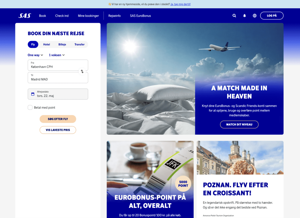 SAS har i et stykke tid arbejdet med en ny hjemmeside. Nu er den klar til det brede publikum, men ikke fuldt lanceret endnu. Vi viser dig hvordan du finder den.