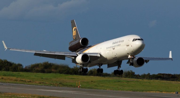 UPS-flyet, en MD-11 på vej fra Louisville Muhammad Ali International Airport til Honolulu, kom kun omkring 30 fod (knap 10 meter) op i luften, før situationen blev katastrofal. Overvågningsvideo fra lufthavnen viser, hvordan den venstre motor pludselig løsrives fra vingen, kastes op over flykroppen og bryder i brand, inden den rammer jorden igen.