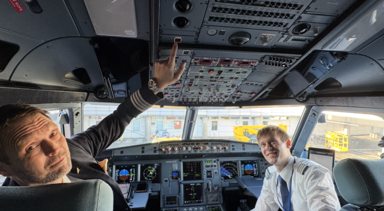 Astralis ombord på første SAS Starlink Airbus A320neo. Foto: Henrik Olsen