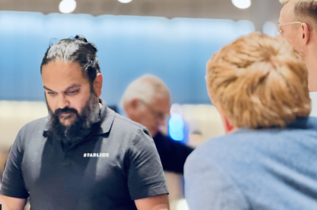 Der var teknikere med fra Starlink for at sikre at alt virkede som det skulle. De havde ikke meget at lave på turen. Foto: Henrik Olsen