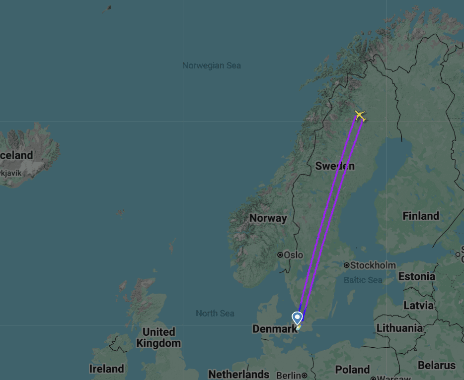 Vi nåede til Polarcirkelen for at teste Starlink i et område der typisk ikke har dækning. Kilde: FlightRadar24